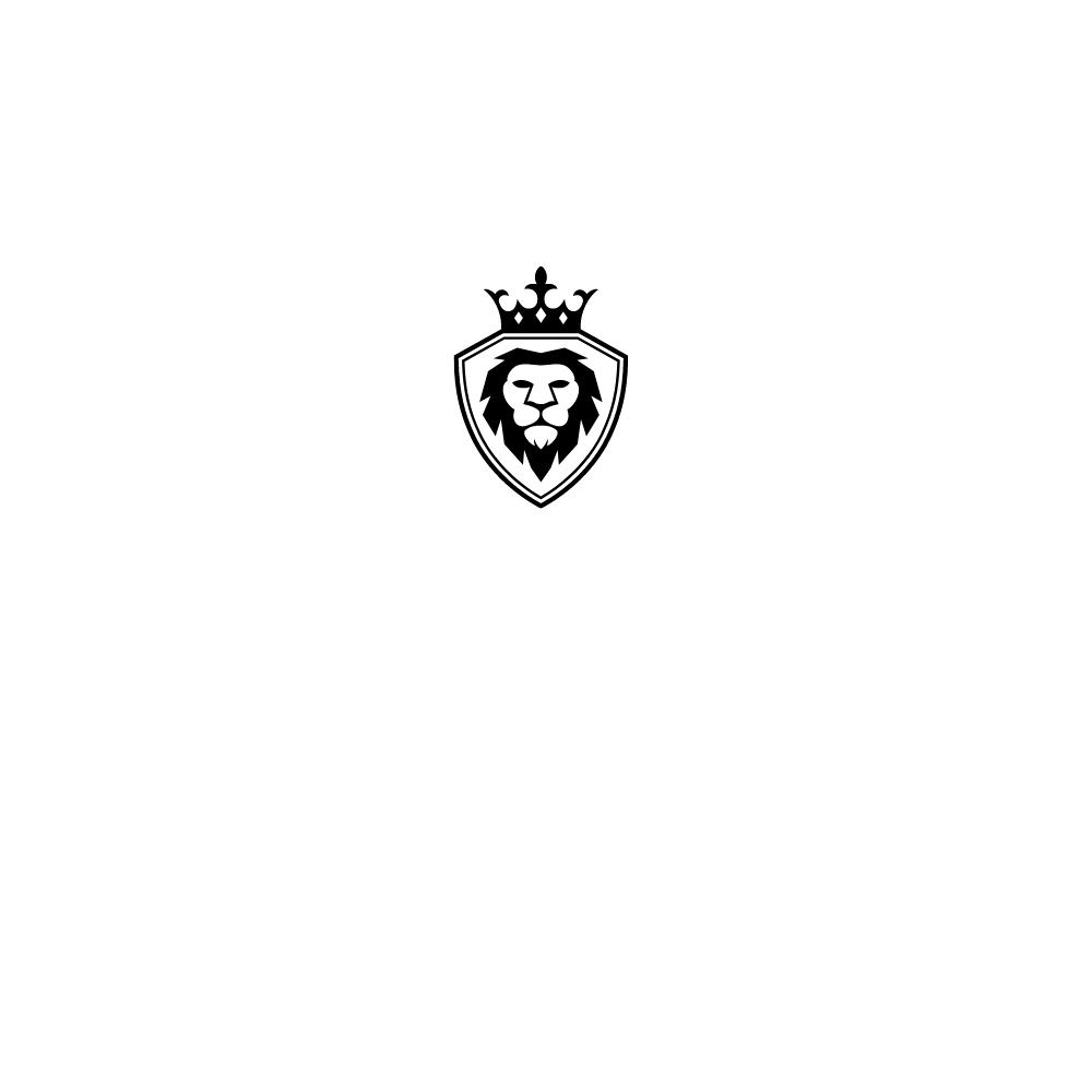 Black background with a white shield emblem containing a lion's face and a crown above it, with the text "BE THE HUSTLE" in bold white capital letters below.